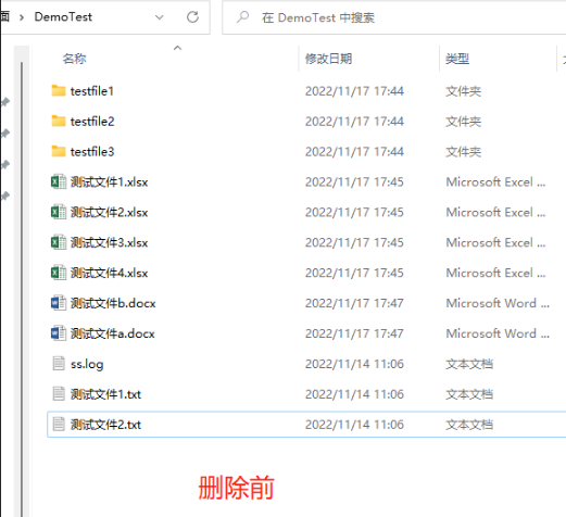 删除前,文件夹下的文件
