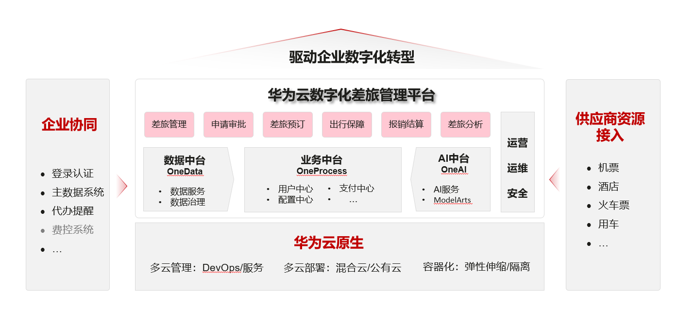 华为云数字化差旅,源于华为18年差旅管理实践,定位于企业差旅管理市场。依托“全场景、全流程、全数据”的建设思路,通过搭建一体化的数字化差旅管理平台,为客户提供从差旅申请、审批、预订、行中保障、报销及差旅分析的一站式出行服务,助力其实现精益管理、提质增效、安全合规,不断提升员工出行体验,使能企业数字化转型成功。截止目前,华为云数字化差旅服务范围已经涉及170+国家和地区,向全球480w+企业客户提供高品质服务,最终把数字化差旅带入每个企业、每个员工。