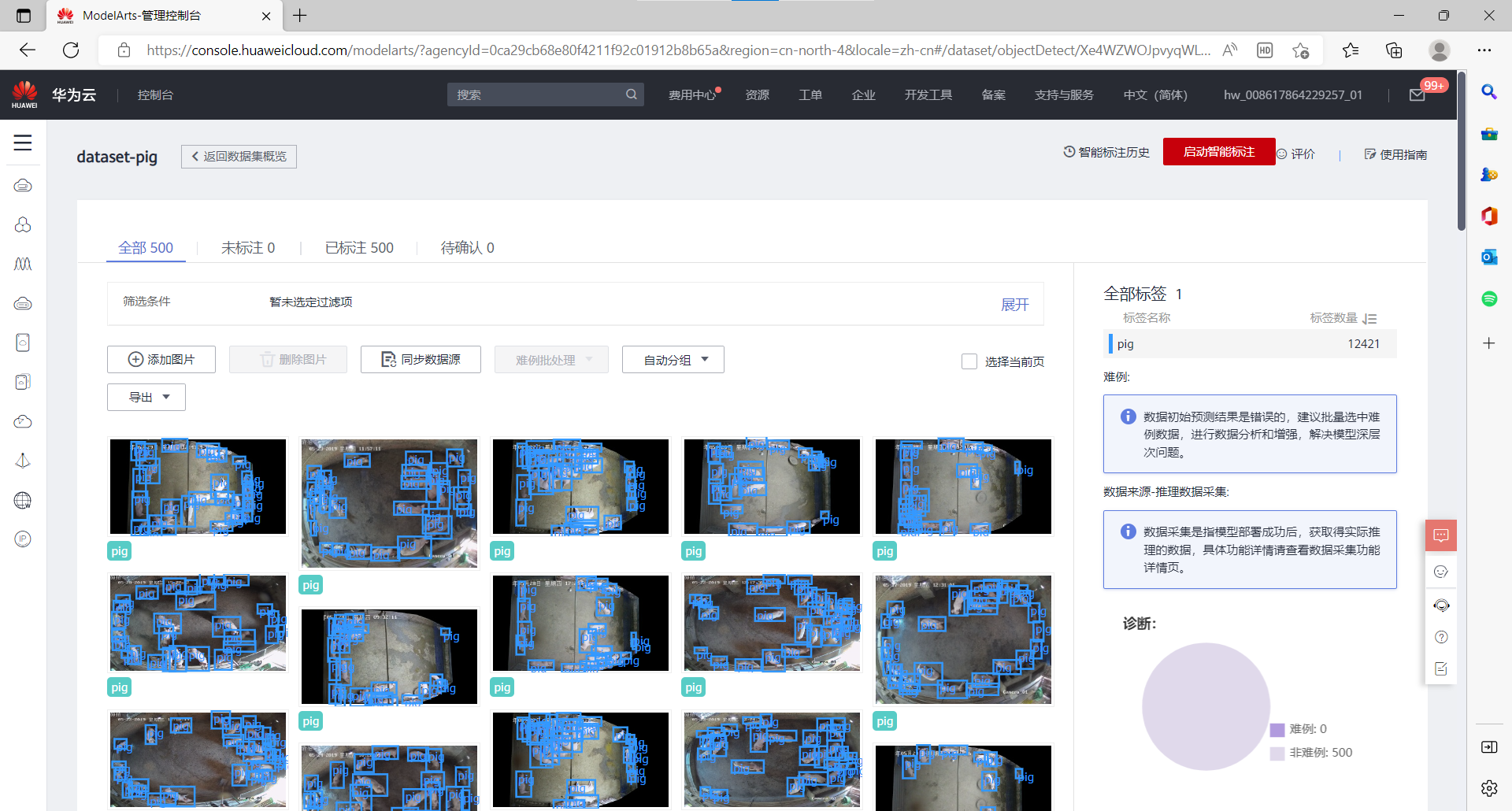 我们的实验数据采用猪只检测数据集,使用ModelArts进行标注,包含500张图片以及对应的xml文件,目前已发布到AI Gallery上。