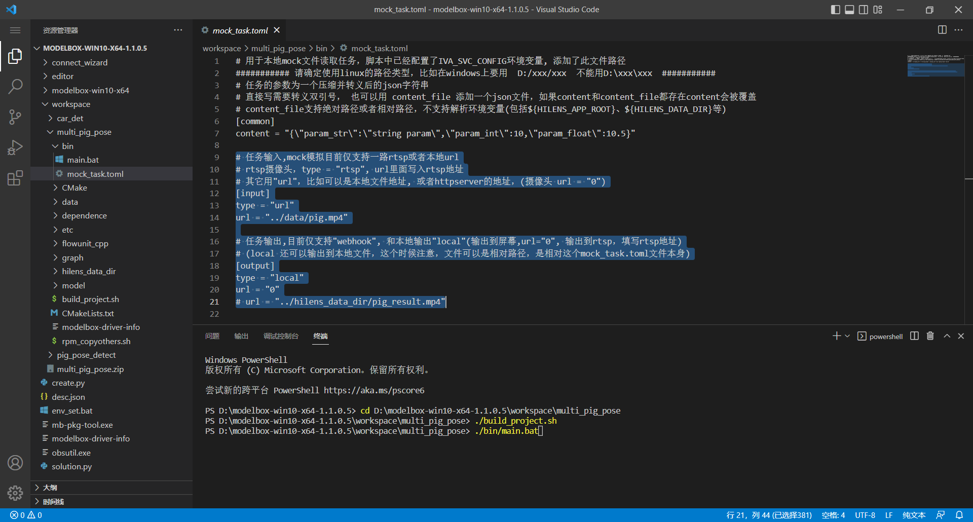 打开VS Code,连接到ModelBox sdk所在目录或者远程开发板,开始进行猪只体态识别应用的开发。下面以RK3568版本为例进行说明,其他版本与之类似。如果对Windows ModelBox SDK使用还不熟悉,可以参考巨佬飞哥的ModelBox 端云协同AI开发套件(Windows)上手指南。