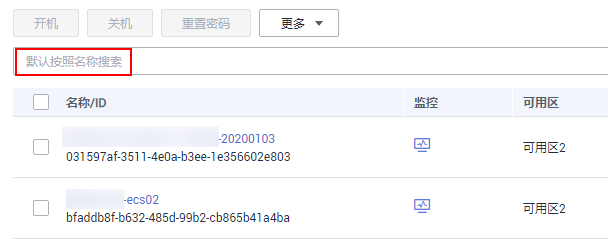 - 将鼠标移动至目标云服务器的“名称/ID”列。