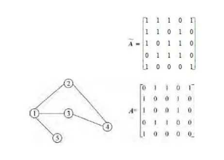 ,通常邻接矩阵用A 表示,在A 上加个波浪线的叫作“有自连的邻接矩阵”,以下简称自连邻接矩阵。定义如下: