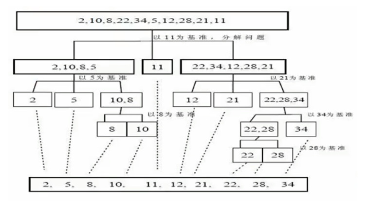 快速排序(Quicksort)是对冒泡排序的一种改进。基本思想是:通过一趟排序将要排序的数据分割成独立的两部分,其中一部分的所有数据都比另外一部分的所有数据都要小,然后再按此方法对这两部分数据分别进行快速排序,整个排序过程可以递归进行,以此达到整个数据变成有序序列