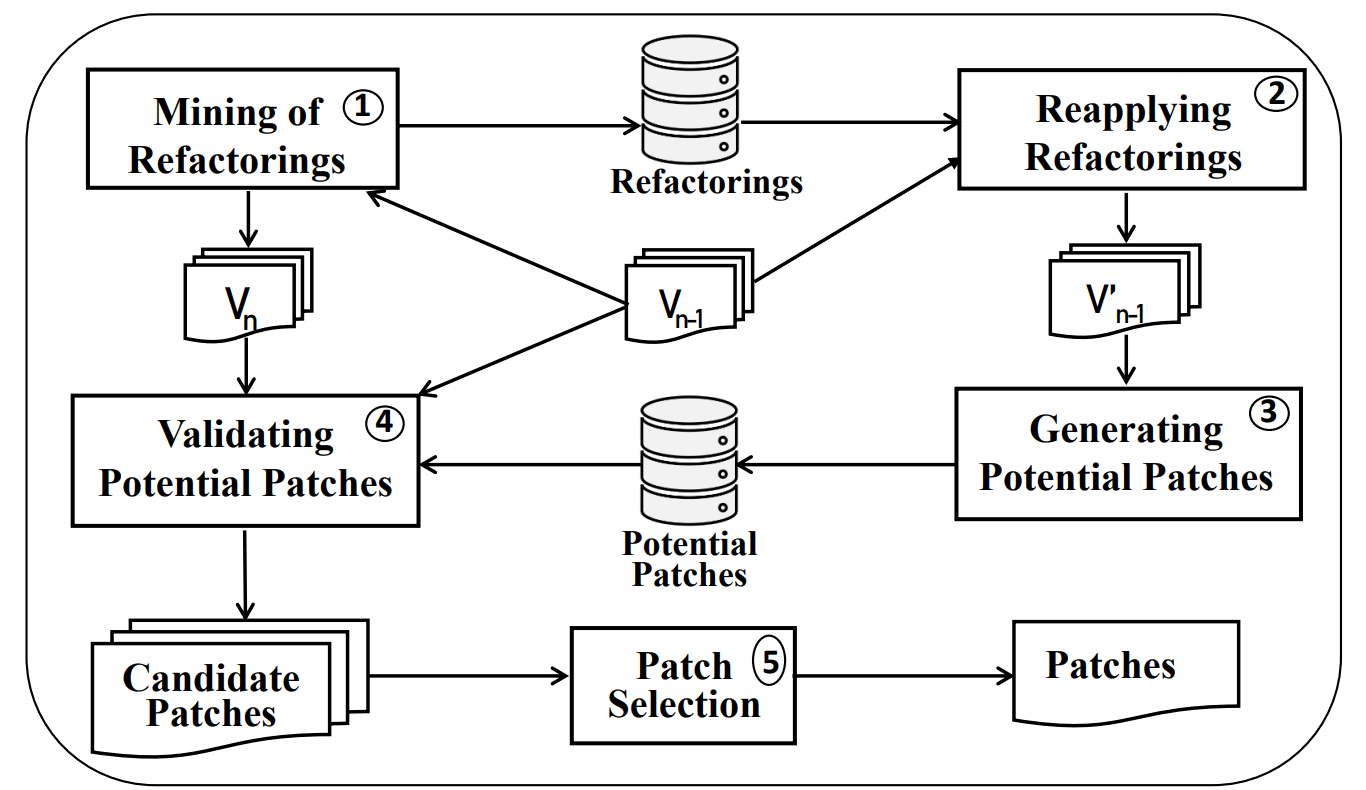 • 其次,构造可能的修复补丁。通过枚举其余非重构变更的所有可能组合,自动生成所有潜在补丁。