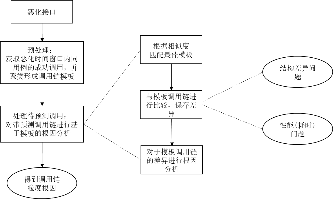 一种常见的根因分析方法是将耗时长尾事件作为性能异常的根因事件。首先获得指定时间窗口内的恶化调用链,遍历接口恶化关联的多个调用链,选择耗时最长的一条;再基于耗时主导原则,对这条耗时最长的调用链找到耗时最长的调用事件,并将其作为恶化根因。这种方法的主要缺点在于,只考虑服务的耗时情况,认为根因只会发生在耗时最长的一条恶化调用链,对调用链结构异常、参数错误等导致的性能异常不具有识别能力;