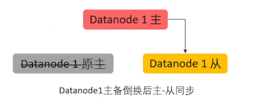 当DN1修复后,我们可以看到节点2的DN1依然是主,他会想DN1备进行备份。