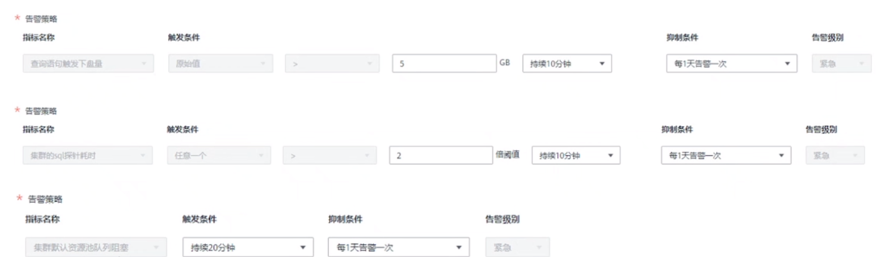 用户自定义告警级别 |