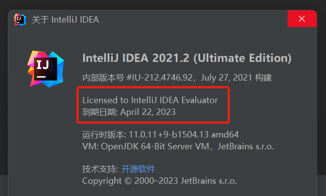后续IDEA,打开的时候,就会自动变更到期日期。可以常看一下 “帮助”-》“关于”,看一下IDEA的到期日,是否变更。