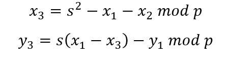,曲线上点P(x_1,y_1)和Q(x_2,y_2),计算P+Q=R,其中R为(x_3,y_3),结果为: