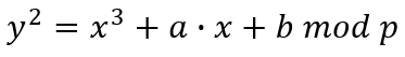 素数域Z_p (p>3)上的椭圆曲线指满足以下条件的所有对(x,y)∈Z_p 的集合 y^2=x^3+a∙x+b mod p 以及一个无穷大的虚数点(单位元)θ,其中a,b∈Z_p 并且满足条件4∙a^3+27∙b^2≠0 mod p,即该曲线是非奇异的。