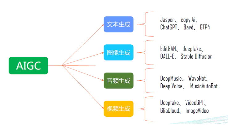 AIGC是一种可以广泛应用于文本、图像、音频和视频生成的人工智能技术。在文本生成方面,它可以运用多种算法进行创作,例如Jasper、copy.Ai、ChatGPT、Bard和GTP4等。在图像生成领域,它可以使用技术如EditGAN、Deepfake、DALL-E和Stable Diffusion等,创造出各种令人惊叹的图片。对于音频生成,AIGC也拥有许多强大的工具,如DeepMusic、WaveNet、Deep Voice和MusicAutoBot等,可以生成高质量的音乐和声音效果。最后,对于视频生成,AIGC同样可以提供很多资源,比如Deepfake、VideoGPT、GliaCloud和ImageVideo等,能够制作出专业级别的视觉效果和动画。总之,AIGC在多个领域都有着广泛的应用前景,并且将会继续不断地发展和完善。