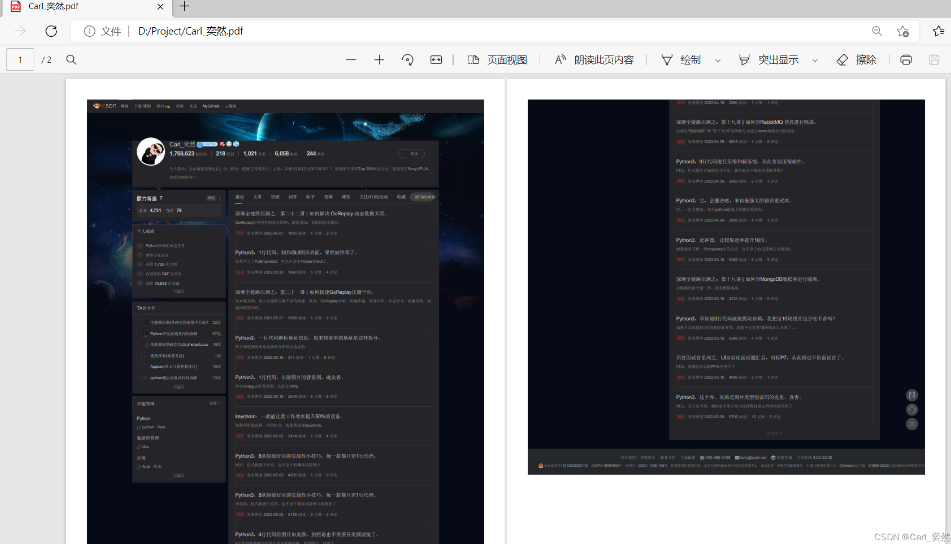 pdfkit.from_url(r'https://blog.csdn.net/wuyoudeyuer?type=blog', 'Carl_奕然.pdf', configuration=config)