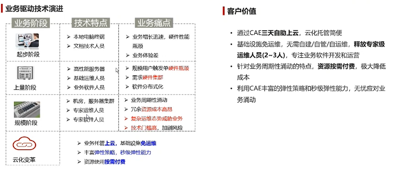 从业务起步阶段到上量阶段到规模阶段,随着业务的增长迅速,逐渐发现痛点,并进行改善,最后发现冗余资源成本高昂,复杂运维态势威胁业务,技术门槛高,加剧风险。