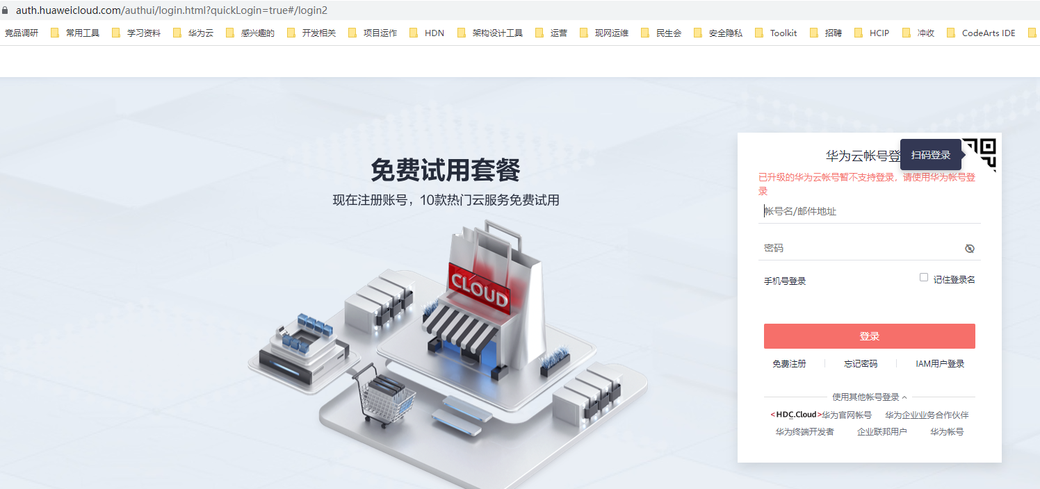 “点击访问CloudIDE产品首页”(需登录华为云账号),点击“免费体验云开发”按钮,进入IDE界面