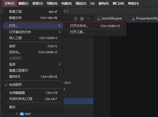 在CodeArts IDE客户端点击“文件”-> “打开…”、“打开文件夹”,找到刚刚的工程目录,选择文件夹,然后选择此工程内打开