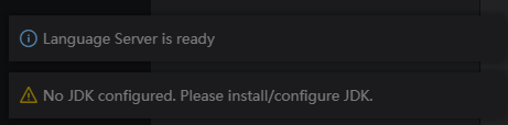 Java Smart Assist插件加载完成后,此时右下角会显示Language Server is ready 以及 提示为配置JDK。