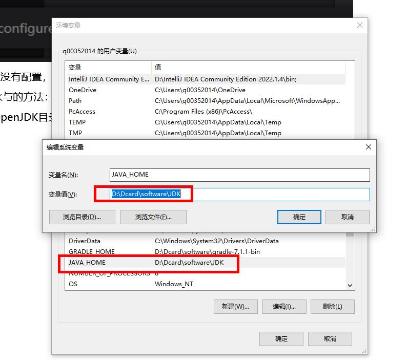 将下载并解压后的OpenJDK目录配置到电脑windows环境变量的JAVA_HOME变量中(如何设置windows环境变量,可以自行baidu),如图所示: