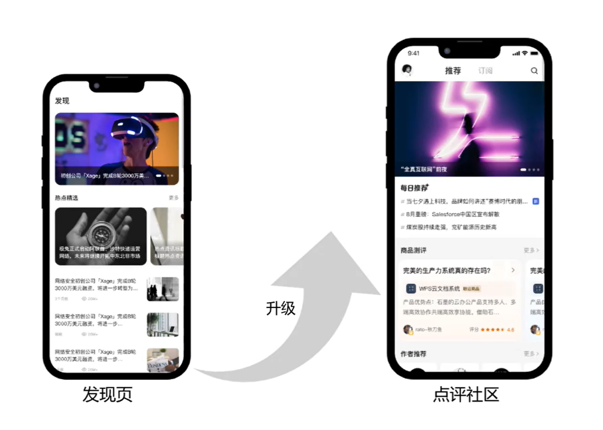 云商店App将发现频道升级为点评社区,发现频道原本是一个信息的发布平台,现在升级为适应低端用户打造的一个结合了点评商品的点评社区平台,目的是通过典型社区的订单知识库的能力,帮助用户挑选真正合适的产品,也帮助商店实现内容营销,点评社区主要分为四大内容板块: