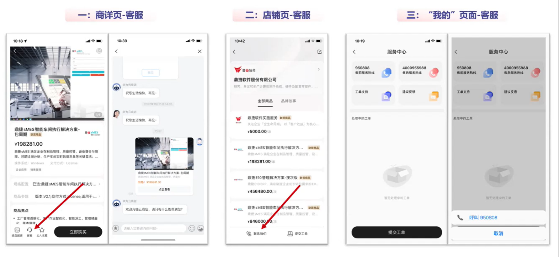 - 入口三:点击我的页面,点击服务中心,可以直达售前售后热线,服务中心还支持建议反馈工单查询。