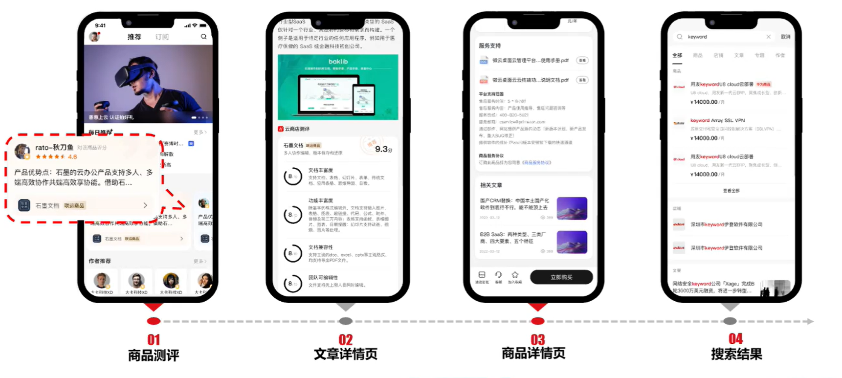 - 搜索商品关键词关联内容:与商品强绑定,丰富商品信息