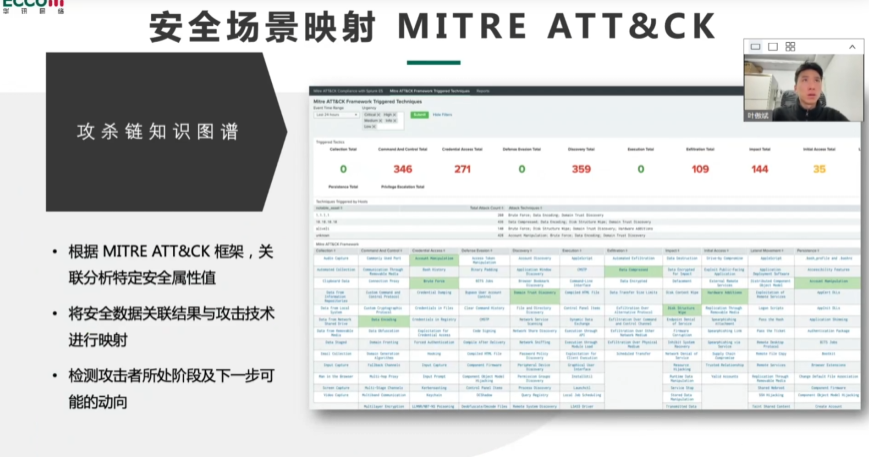 通过基于攻杀链检测模型来将安全数据关联到攻击检测,不同的安全检测规则就可以发现不同的攻击,最后会映射到知识图谱,可以检测或者说可以发现或预测攻击者所处阶段,以及下一步可能的动作。