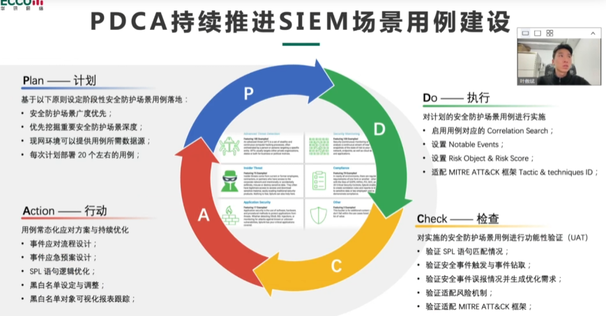 关于SIEM的内容管理和内容优化过程,需要采用PDCA模型。SIEM是一个很好的平台工具,如何通过SIEM来持续的优化和丰富检测规则和内容呢?
