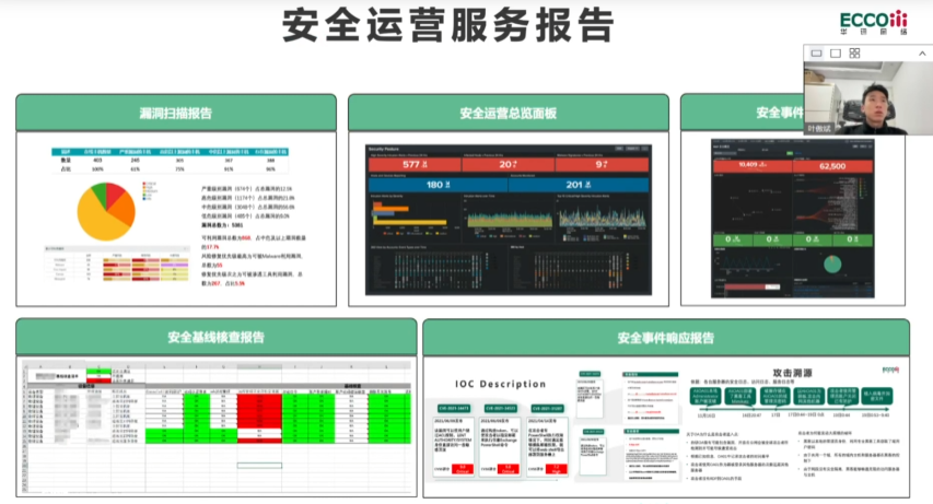 最后说一下华讯能够提供的报告,包括安全服务报告、渗透漏扫报告、安全运营的总览和安全事件调查的报告、安全基线核查报告以及安全事件响应的报告。