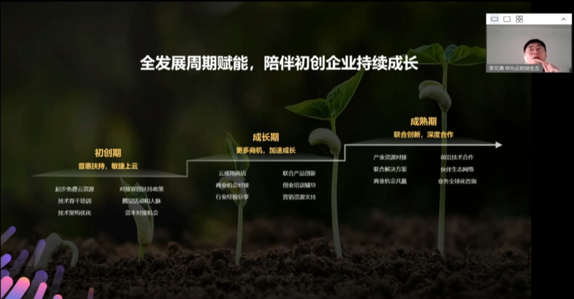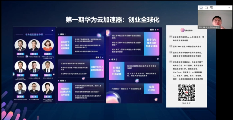 第二个是华为云在创业方面也能够给企业提供非常多的帮助。一方面是华为整个公司的管理经验和文化可以给初创企业提供经验,同时华为也会动用初创圈层里面的VC资源、投资人资源和相应的孵化器、加速器资源帮助初创企业在创业的过程中少走弯路,避免投融资的坑。