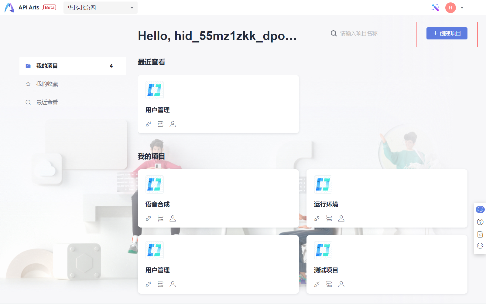 3.1)点击首页右上角的创建项目按钮