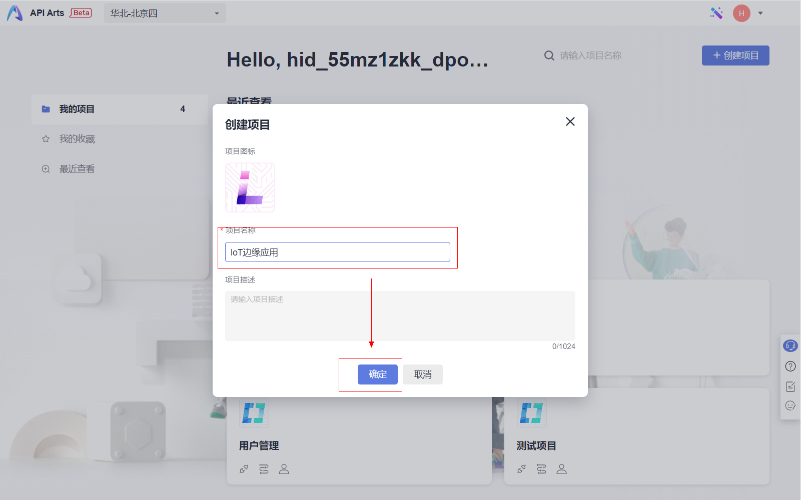 3.2)在新建弹窗内输入“loT边缘应用”,点击确定