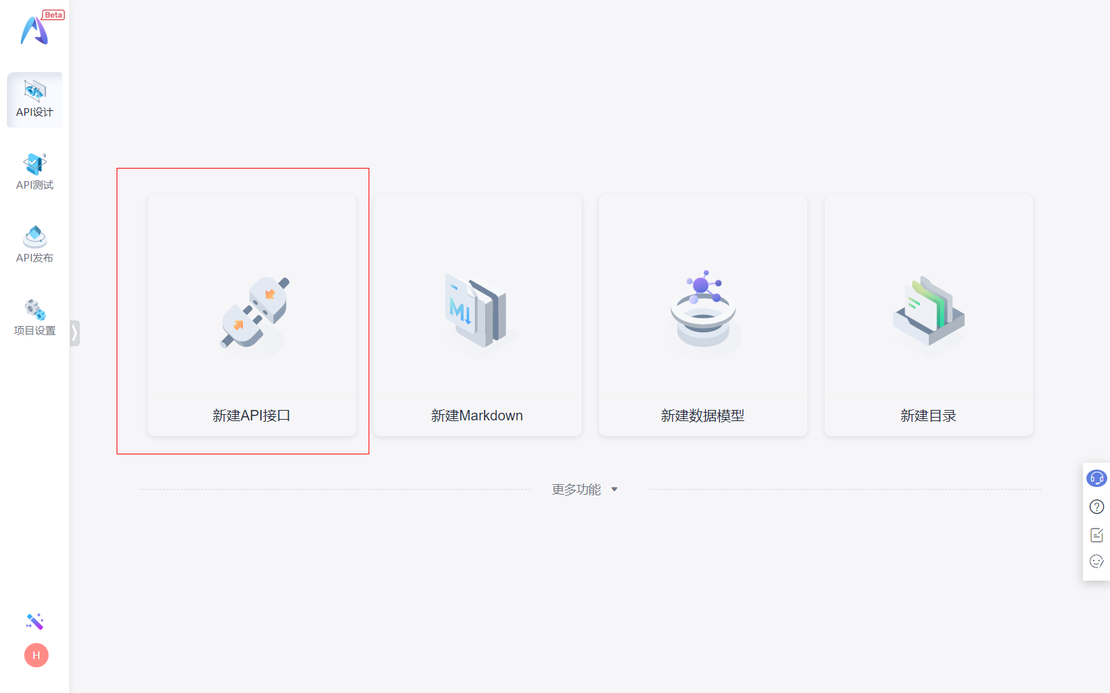 3.3)新建成功之后,自动跳转到项目详情页面,点击“新建API接口”卡片,我们通过设计API的形式介绍创建边缘应用的接口。