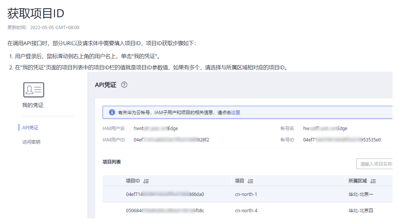 project_id是调用API接口时需要的一个凭证,可以通过以下方式获得:
