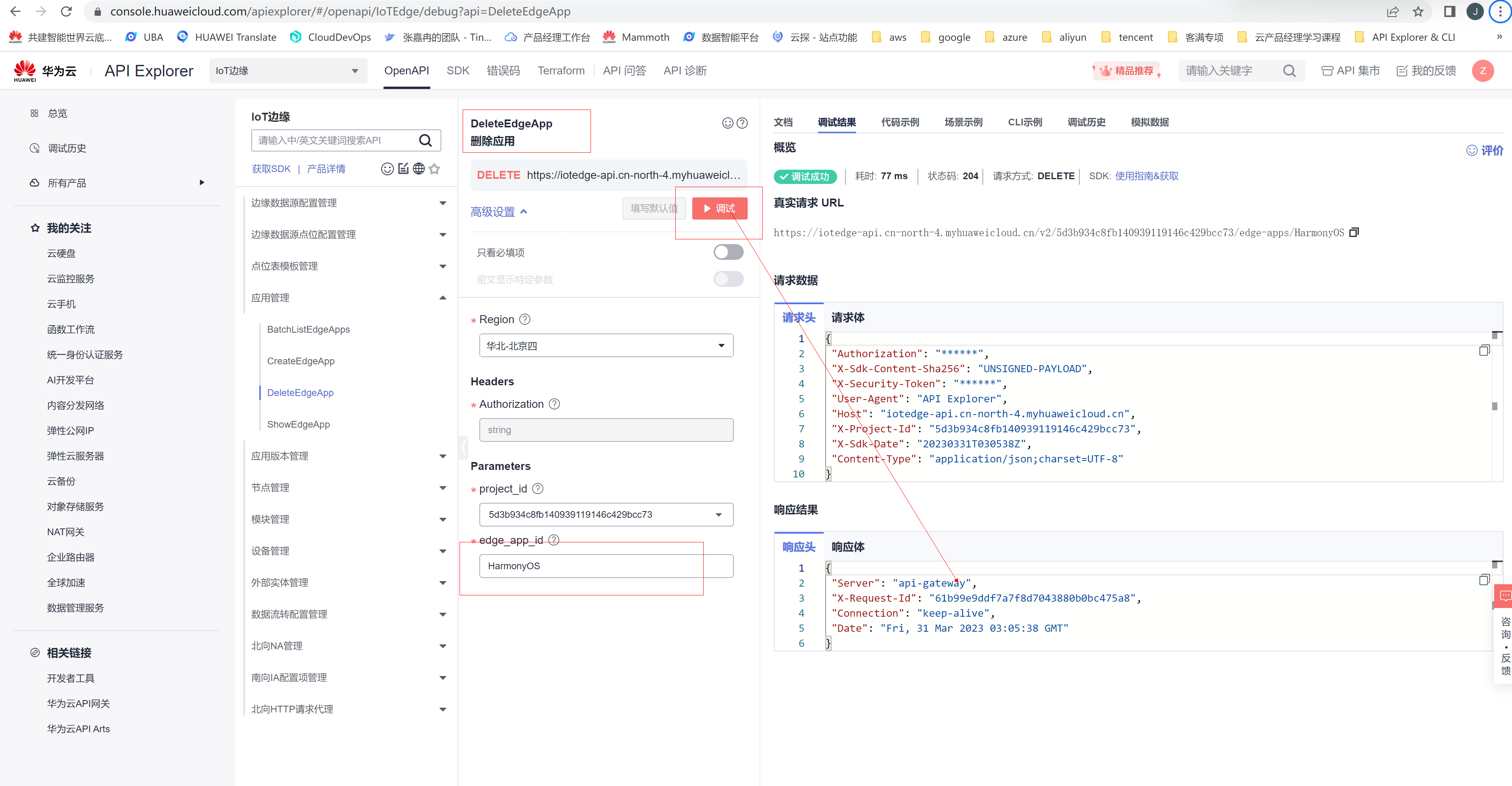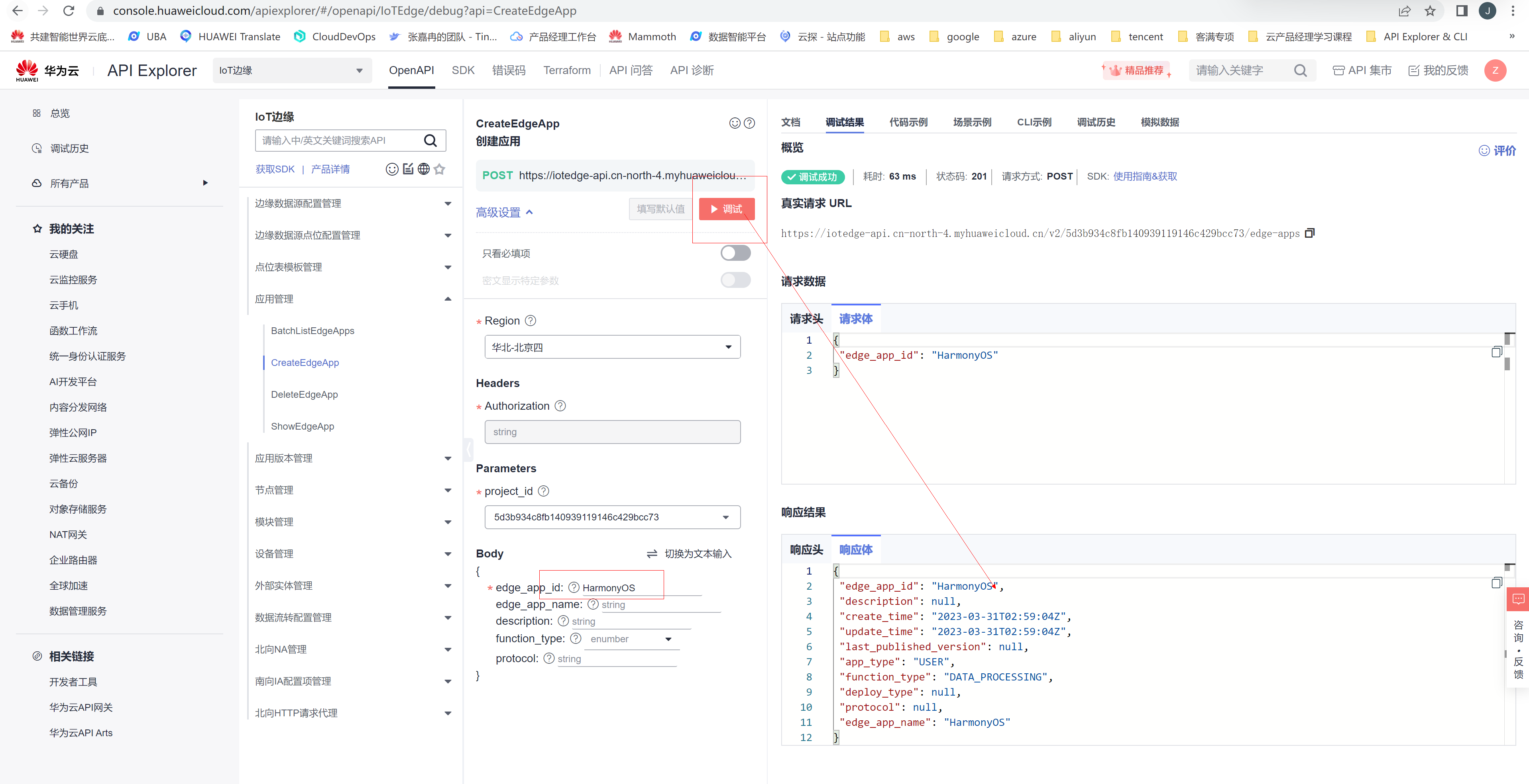 2、登录API Explorer IOT边缘服务调试界面(需要华为云账号登录):