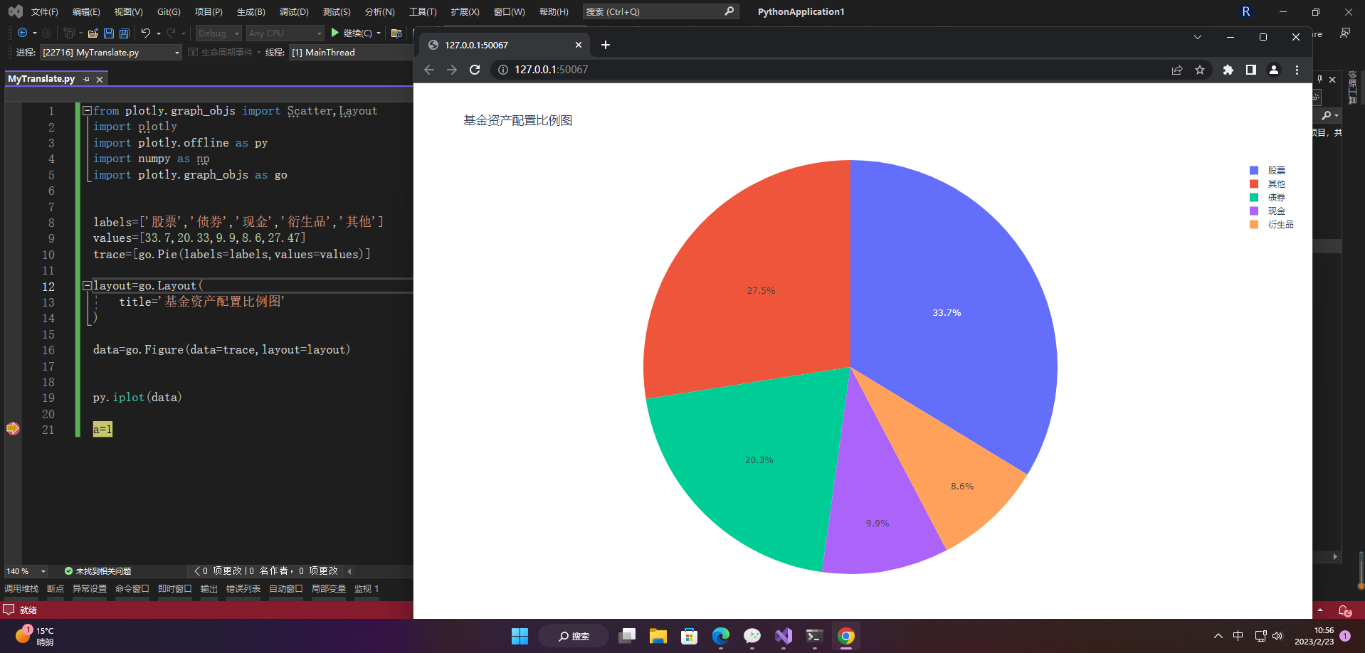 建立在 plotly.js 之上,是一个高级的声明性图表库。plotly.js 附带 30 多种图表类型,包括科学图表、3D 图形、统计图表、SVG 地图、财务图表等。plotly.py