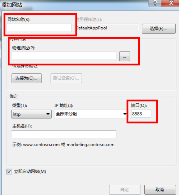 ③在网站文件那,右键添加文件------>填写一个网站名称,物理地址(就是网站文件)端口我改为了8888