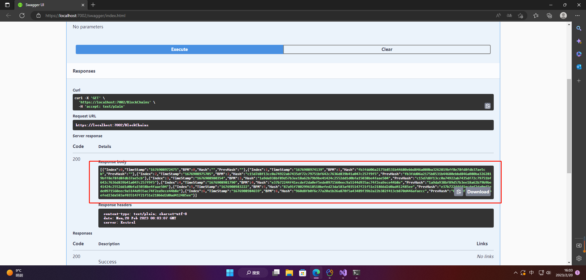 return JsonConvert.SerializeObject(BlockGenerator._blockChain);