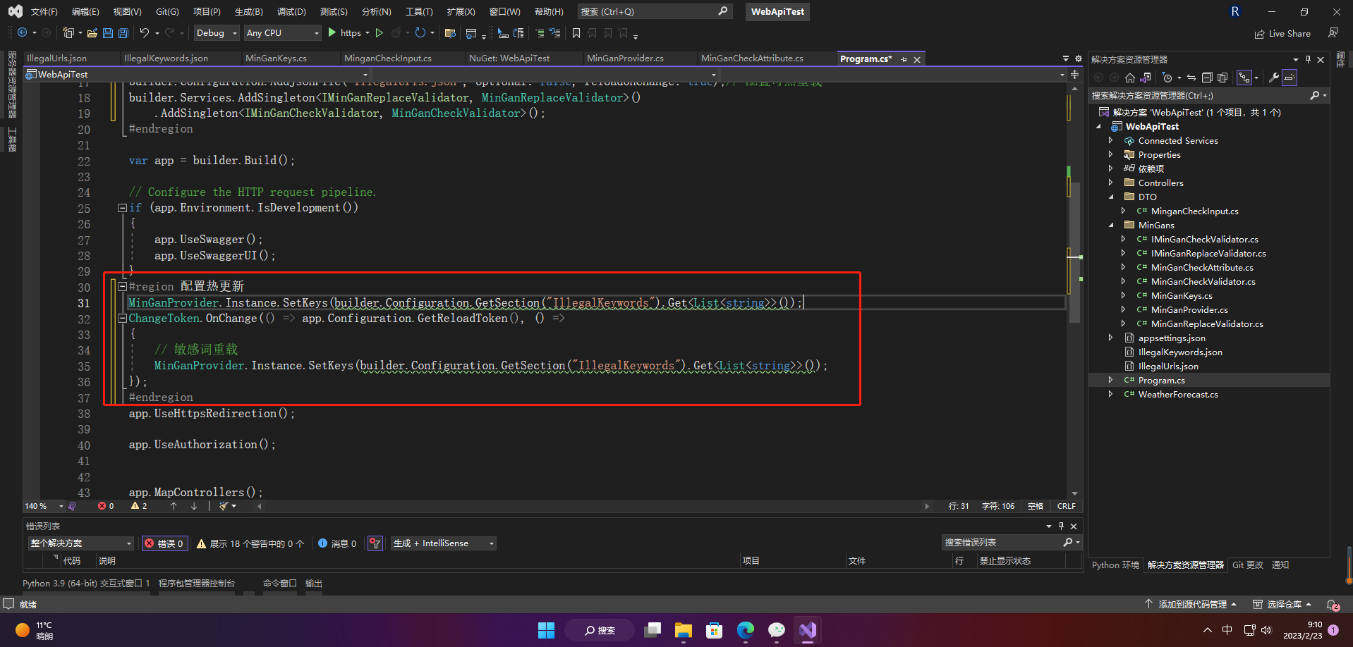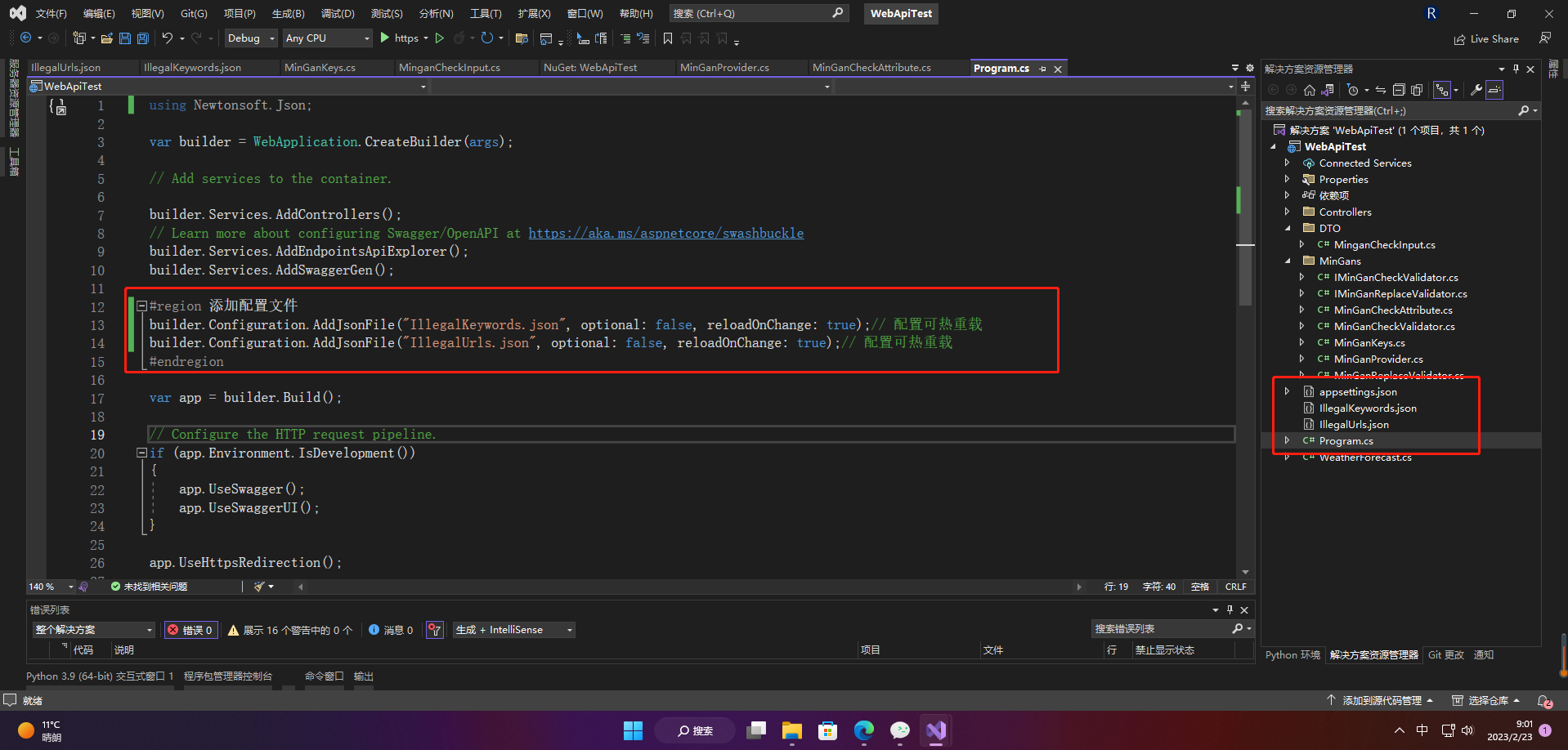 builder.Configuration.AddJsonFile("IllegalKeywords.json", optional: false, reloadOnChange: true);// 配置可热重载