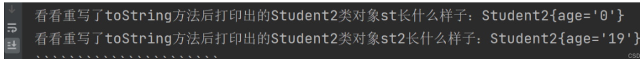 System.out.println("修改age后学生类的属性值为:" + student2);