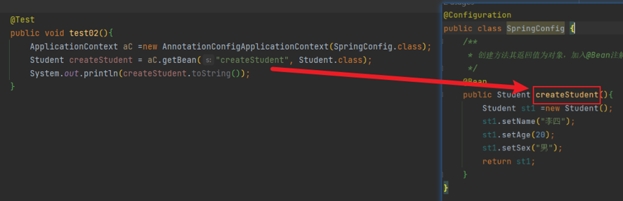 * 创建方法其返回值为对象,加入@Bean注解后,对象就注入到IOC容器中