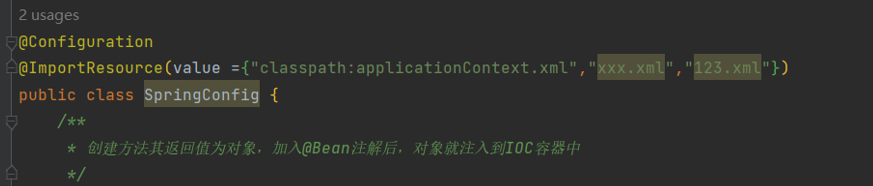 * 使用@Configuration注解后SpringConfig类,代替springConfig.xml
