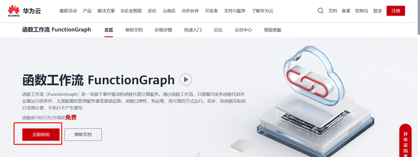 点击“立即使用”按钮,进入FunctionGraph首页。