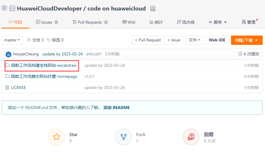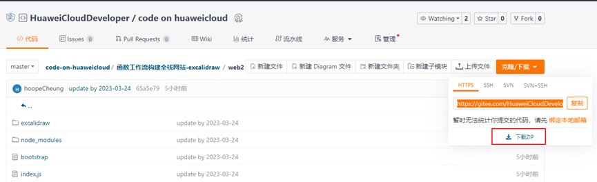 前往代码仓,选择“函数工作流构建全栈网站”文件夹,下载web2.zip文件