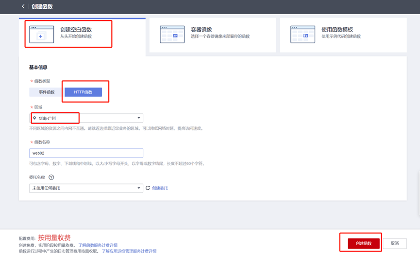 在创建函数页,按如下参数配置项目