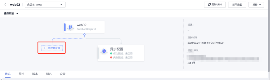 在函数概述页点击“创建触发器”