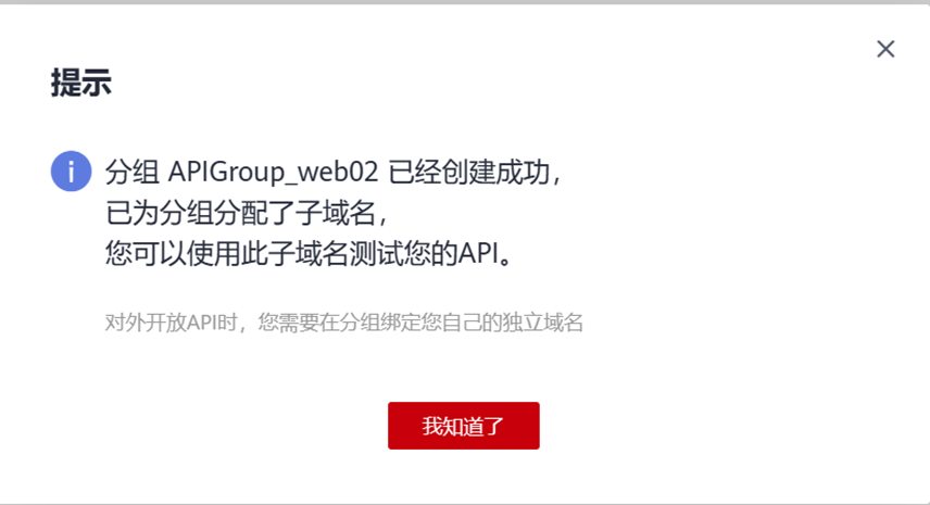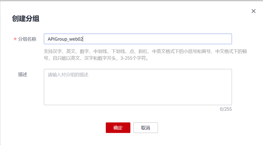 设置分组名称为“APIGroup_web02”(可自定义),点击确定完成创建。