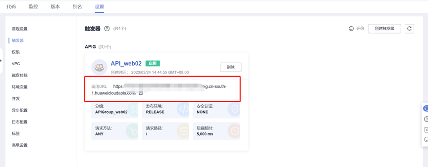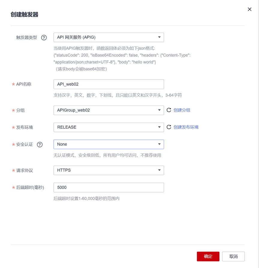 - 触发器类型:API网关服务(APIG)