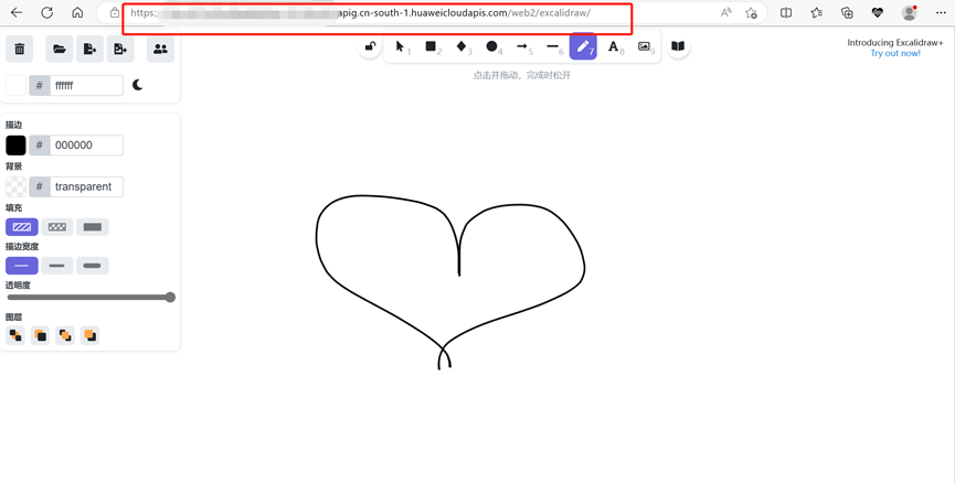 访问链接:APIG调用URL+/web2/excalidraw/,即可访问应用。