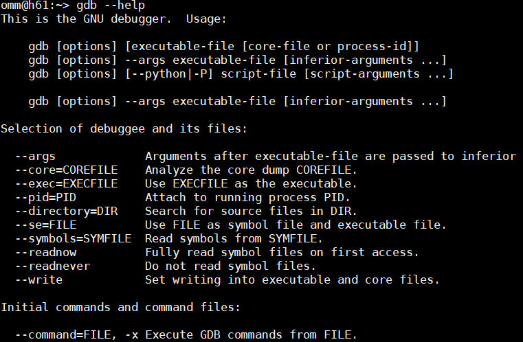 gdb --help