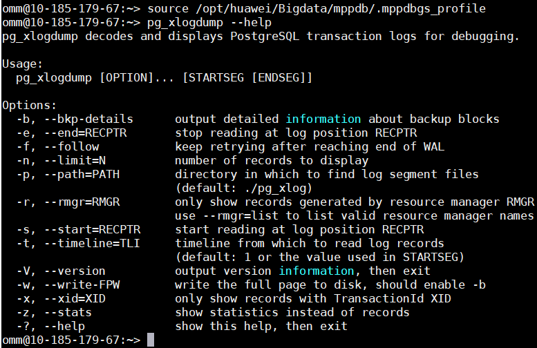 pg_xlogdump提示以下信息则已安装(纯软环境加载环境变量后执行,HC/HCS/HCSO登录至沙箱内执行)