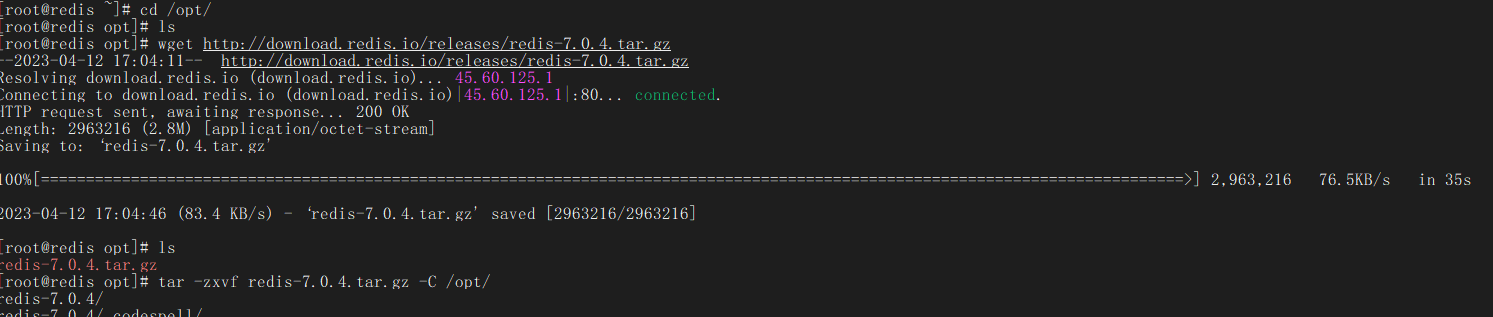 tar -zxvf redis-7.0.4.tar.gz -C /opt/